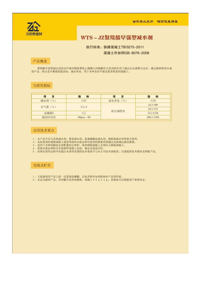 WTS-JZ聚羧酸早強型減水劑