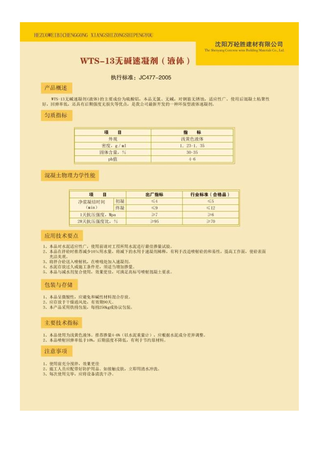 WTS-13無堿速凝劑(液體)